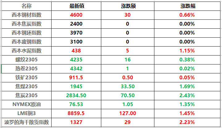 超2%焦炭跌,煤等跌逾1%PVC、焦,油等幼幅下跌苯乙烯、菜籽;超1%豆一涨,等幼幅上涨菜粕、白糖。涨1.11%国际铜夜盘收,0.96%沪铜收涨,0.14%沪铝收涨,0.17%沪锌收涨,0.07%沪铅收跌,0.06%沪镍收涨,1.20%沪锡收跌。跌0.44%不锈钢夜盘收。合约夜盘收跌2.13%上期所原油期货2304,0元公民币/桶报561.0。跌0.44%沪金夜盘收,0.91%沪银收跌。