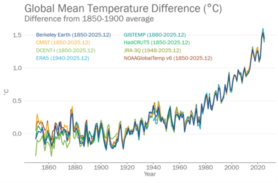 数据集的整合阐述依照该公报对八个,平跨过1.44°C(不确定性局限为±0.13°C)环球均匀地表温度比1850年至1900年的均匀水。中其,176年记实中第二热的年份两个数据集将2025年列为,其列为第三热的年份别的六个数据集将。